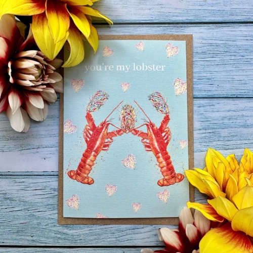 You’re my Lobster Eco Card Valentines Galantines Love Friend | Colourful Art | Wildlife | Friend | Eco Friendly Card | Colourful | Nature | Blank | Occasion | Greetings | Watercolour | Jen Winnett Art