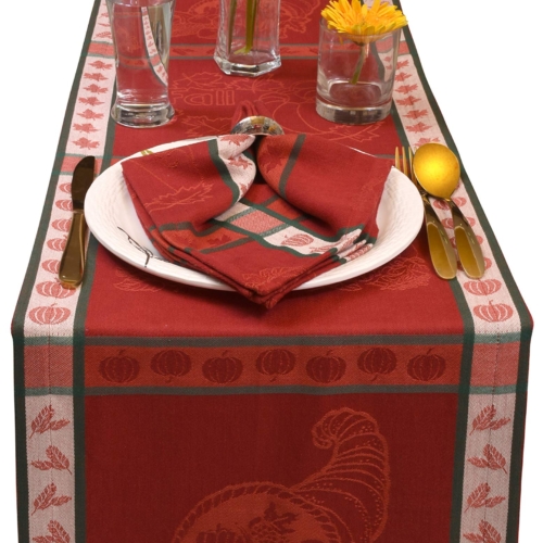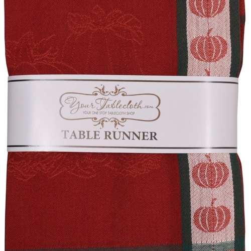 Yourtablecloth Dining Table Runner–Beautiful Fall Thanksgiving Woven Design–Long Informal Formal Tablecloth Liner–Fadeproof, Stain Resistant & Washable–100% Cotton–Eco-Friendly-Autumn Jacquard 14×108