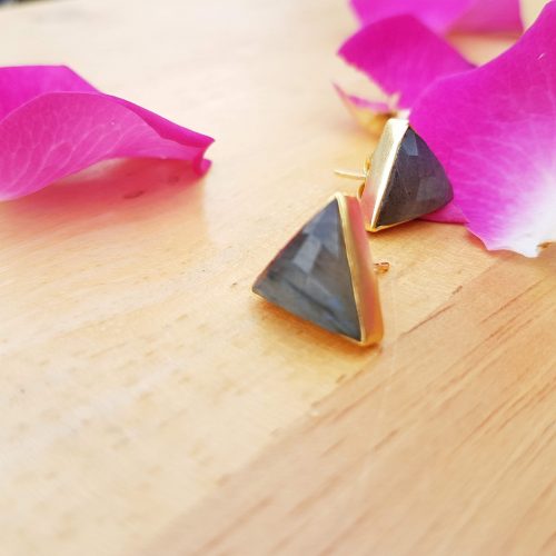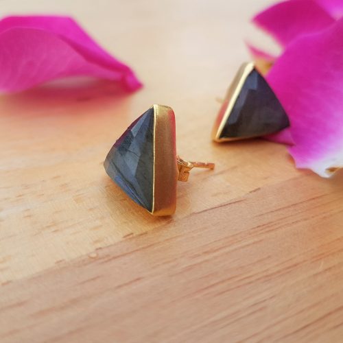 The semi precious labradorite faceted stones teamed with the 18k matte-gold coating (on sterling silver) is timeless. Each gemstone tells a story and is unique so colour intensities and hues will vary as they are natural. Show some love with these luxury handmade earrings.