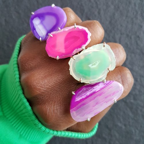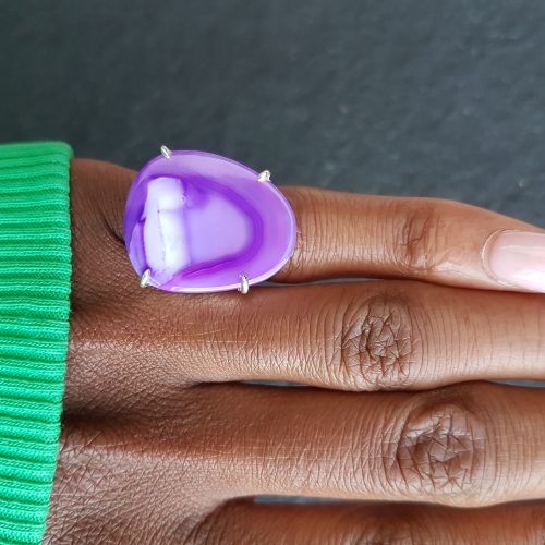 YYL LUXE VIVID PURPLE ‘ARABA’ AGATE STONE STERLING SILVER RING – fully adjustable