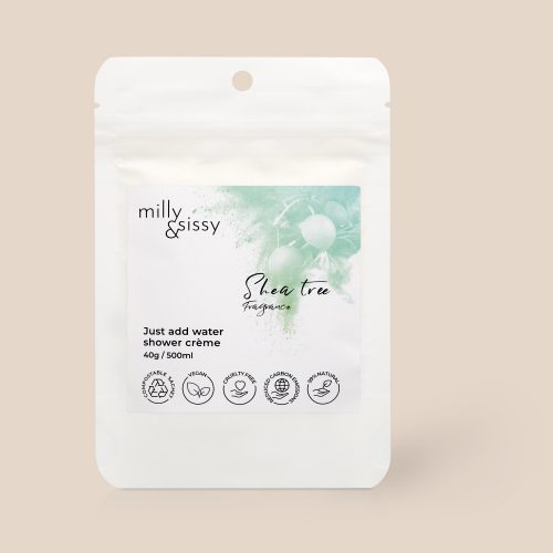 Our delicately fragranced Shea Tree shower creme is made from 99% natural ingredients and once water is added, will make 500ml. This shower creme will leave your skin feeling smooth, moisturized and clean and leave your conscience clear knowing you’ve made a good choice for the planet.