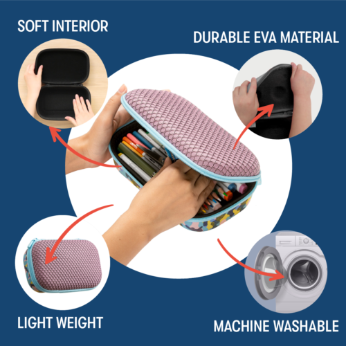 * Sturdy outer shell – this cute pencil box features a sturdy outer shell and soft velvety interior to protect its contents.* Roomy and versatile – this big box will hold 60 pens and pencils in one convenient place. The multi-purpose design makes it ideal to use for art and craft. Supplies, as a first aid kit or makeup/cosmetics case. * Lifetime warranty – ZIPIT products are covered against any manufacturer’s defects; registration required* Machine washable* * L x W x H (inches): 8.2 x 5.3 x 2.9.