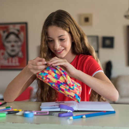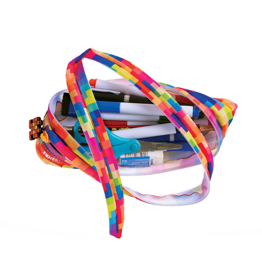 * Carton contains 16 pcs.* Made of 1 long zipper* One main compartment* Fits up to 30 pens & pencils* Extra wide diagonal opening makes it easy to see and access everything inside* Perfect for keys, coins & lip balm* Item size 8.7″×0.8″×4″