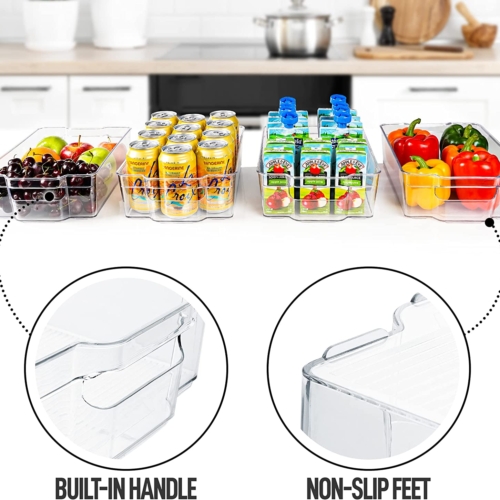 Features a built-in handle that makes the bin accessible at all times for kitchen organization. They are also stackable, which is very helpful in maximizing the use of space in your fridge food storage.