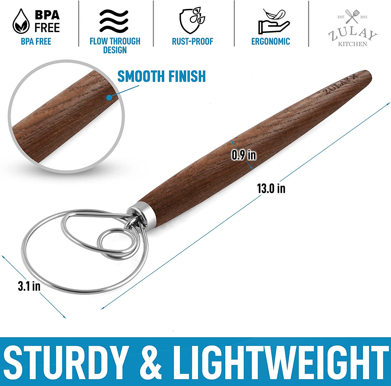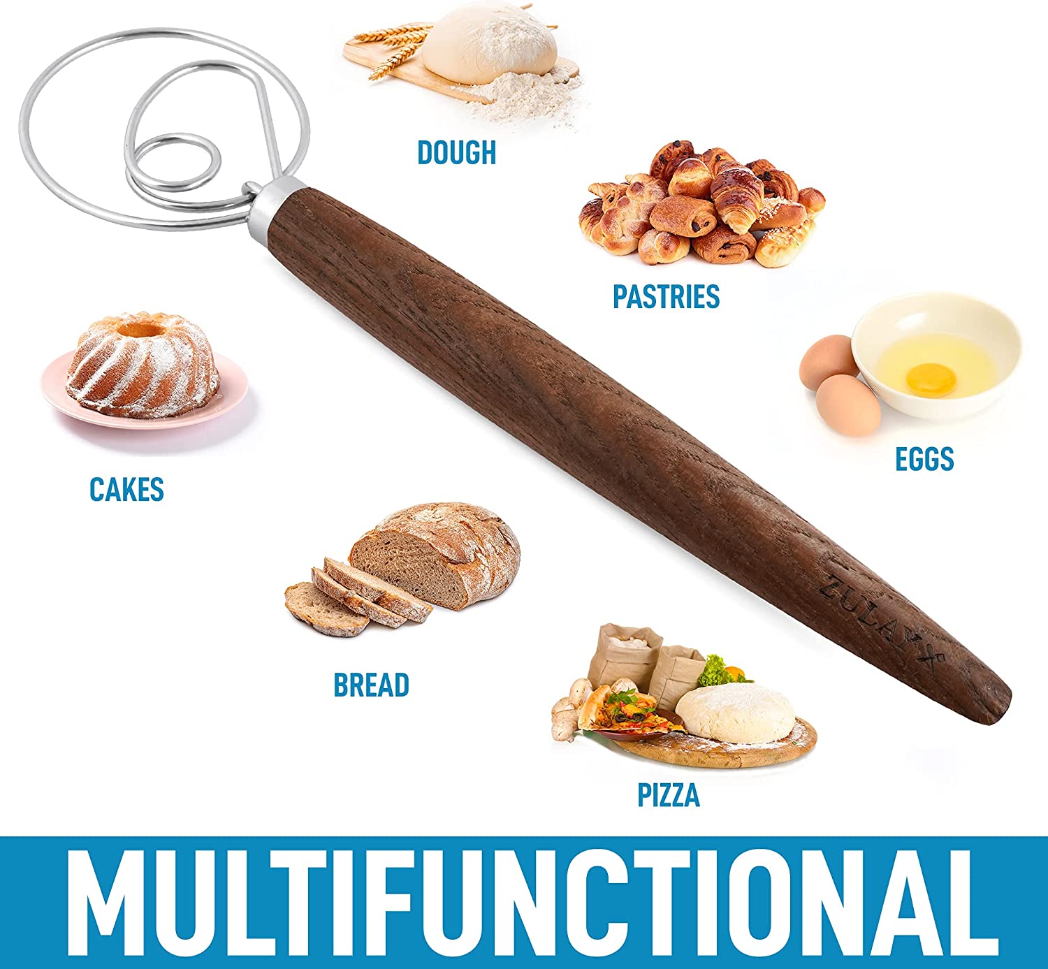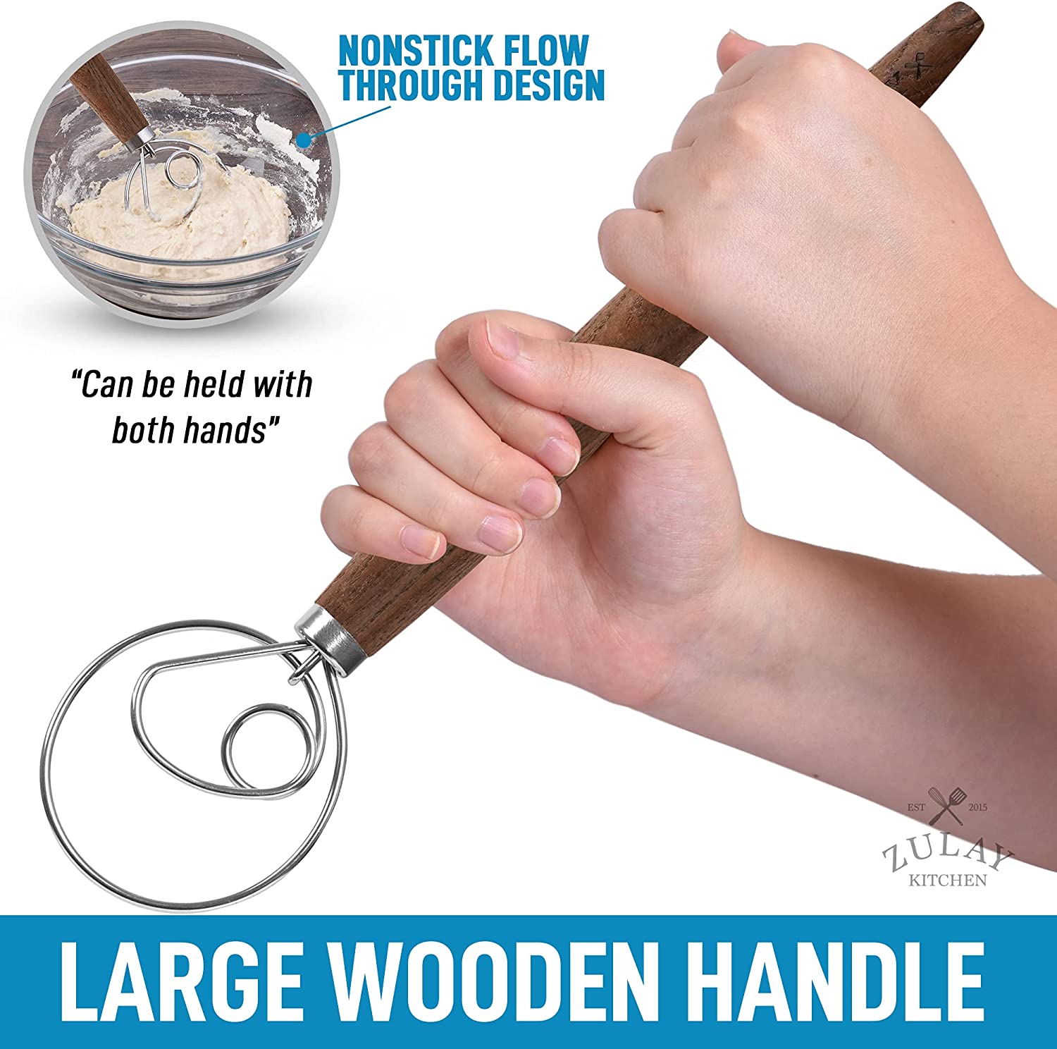 You can now mix your batters three times faster than you would with a wooden spoon or whisk with smooth and even consistency. This dough mixer hand tool features a food grade smooth wooden handle that is comfortable to hold, ideal for making quick bread without the hassle of having to drag out your bread-machine, stand-mixer, or any heavy equipment.